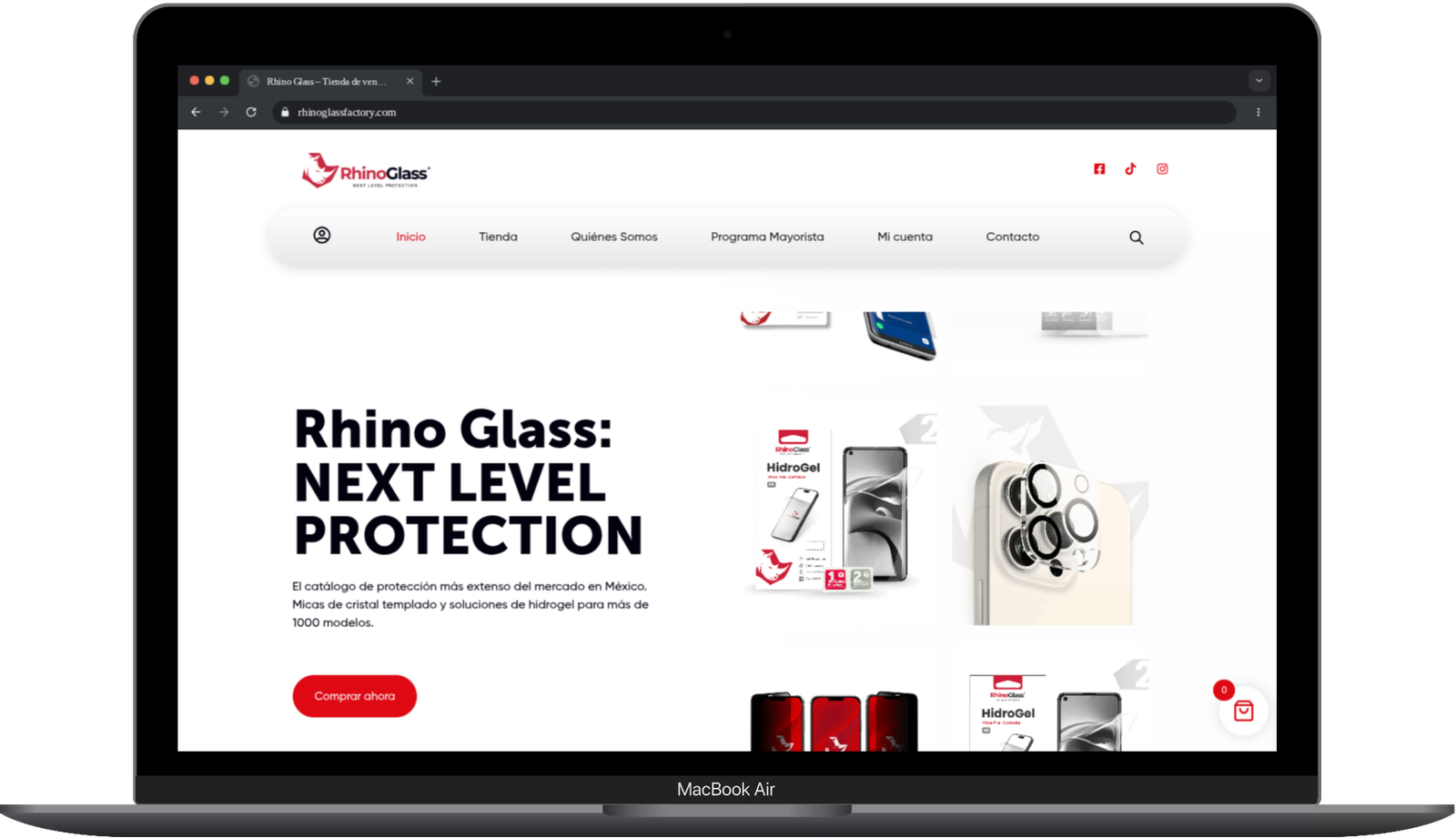 Desde el corazón de México, colaboramos con Rhinoglass para transformar una operación de distribución tradicional en una plataforma digital de alta eficiencia. En un mercado tan competitivo como el de los accesorios tecnológicos, logramos que la calidad de sus micas de cristal templado y la magnitud de su catálogo se reflejen en una experiencia web profesional y ágil. Desafío que enfrentaba
