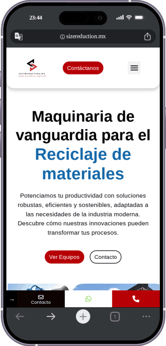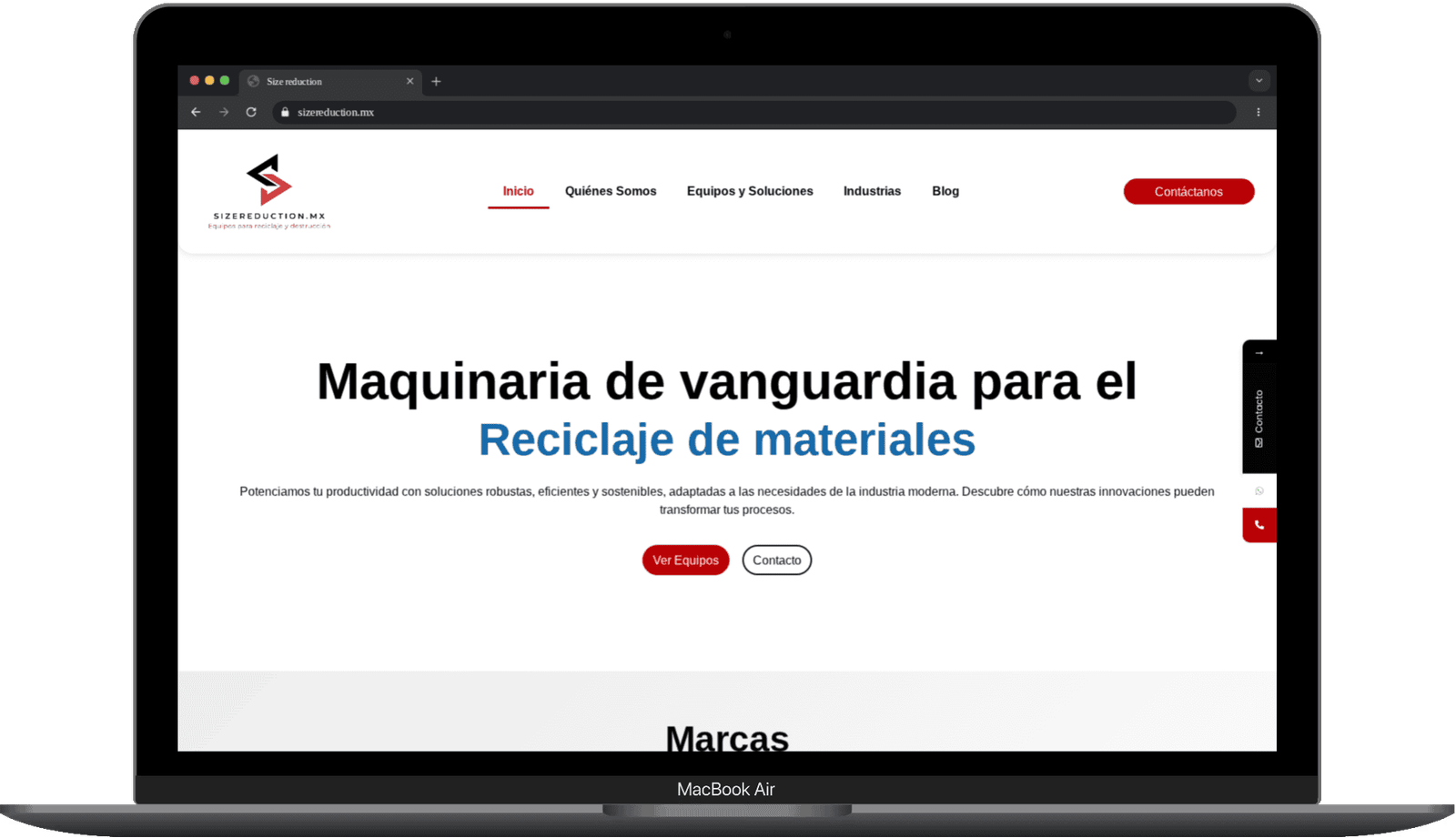 Desarrollo de una plataforma digital robusta para Size Reduction, una empresa líder en soluciones industriales de trituración y reciclaje. El proyecto se centró en proyectar una imagen de ingeniería de alta precisión, facilitando la consulta de maquinaria pesada y optimizando la captación de prospectos en el sector industrial.
