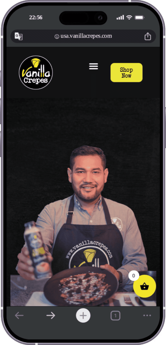 El cliente (bajo el usuario vanillacrepeatl) requería el desarrollo de un sitio web profesional y moderno para su marca "Vanilla Crepes" (enfocada en el mercado estadounidense) bajo el dominio usa.vanillacrepes.com. El reto técnico consistía en plasmar estrictamente la identidad corporativa de la marca (tipografías y colores), integrar formularios conectados directamente a Zapier para automatización de datos, y lidiar con importantes problemas de rendimiento y lentitud derivados de su proveedor de hosting original.